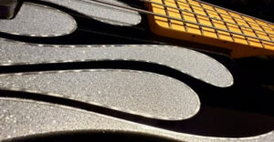 Lorsque l’on veut garnir avec un matériau transparent, pour niveler une surface, par exemple après l’application de paillettes polyester, il faut utiliser un vernis très épais comme le vernis Super UHS 6000