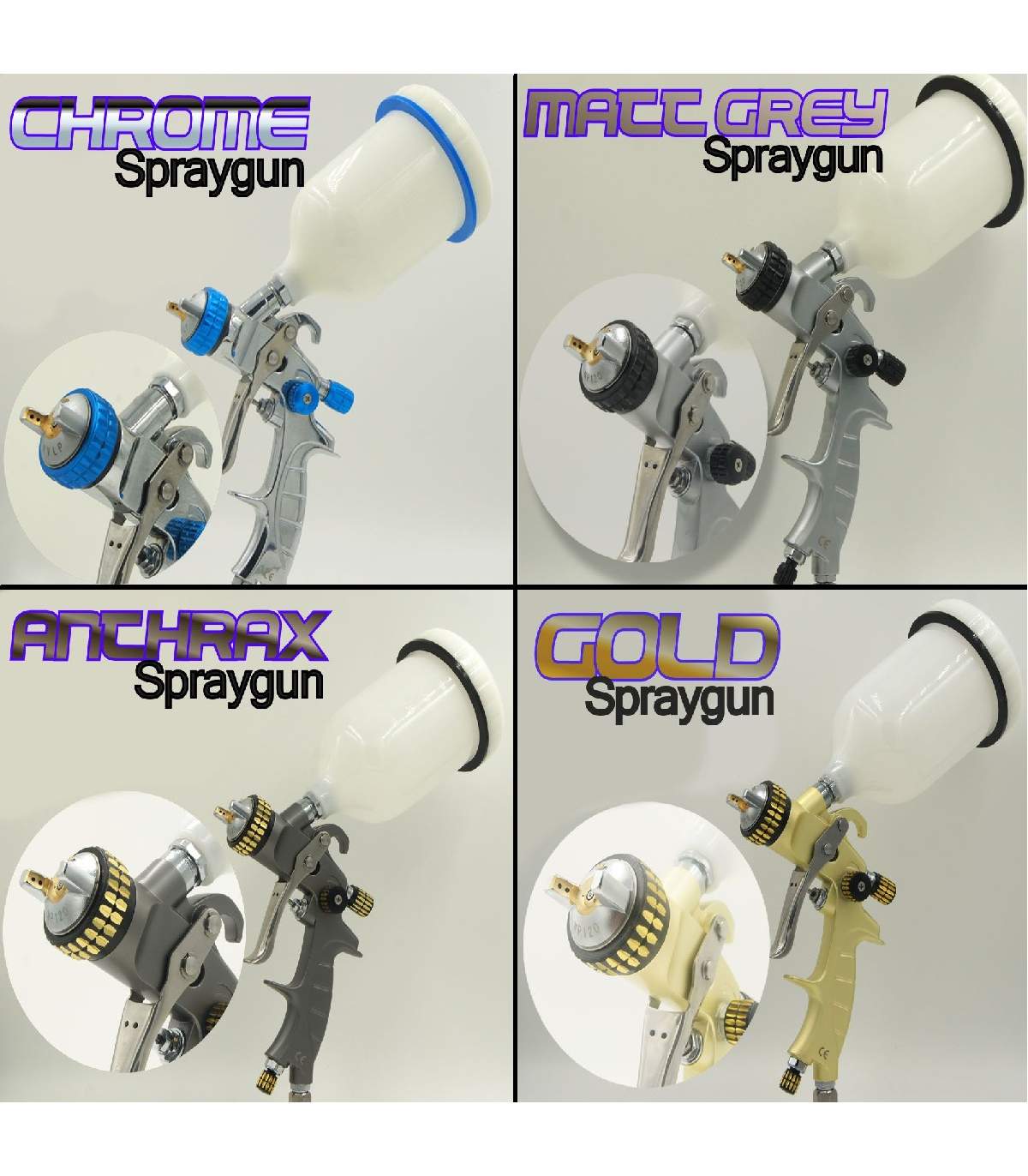 Ils permettent un réglage précis des pressions d'air, ainsi que des formes et débit de jets (Atomisation ultra fine, haut Rendement HVLP)